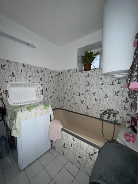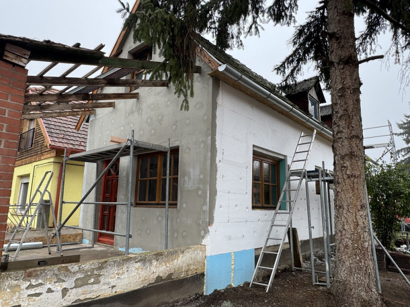 A telek bal oldalán egy 40 m² alapterületű, tégla falazatú, kétszintes ház található, amelynek felújítása már elkezdődött. A külső falak 10 cm szigetelést kaptak, a víz- és villanyvezetékek teljes egészében cserélve lettek, és a nyílászárók nagy része új, fa ablakokra lett cserélve. A ház korábban bisztróként működött, így kiváló lehetőséget nyújt vendéglátóhely, szépségszalon, iroda kialakítására, de akár több generáció együttélésére is, mivel a földszint és az emelet külön bejárattal rendelkezik.