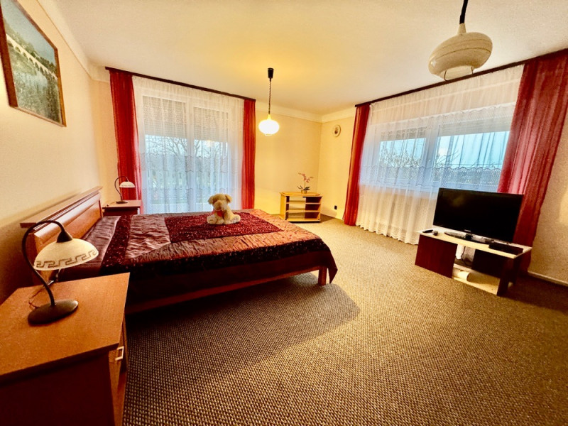 TÁGAS KÉTSZINTES CSALÁDI HÁZ NAGY TELEKKEL Szabadbattyán központjához közel, egy 1190 m²-es saroktelken eladó egy 1989-ben épült, rendkívül masszív szerkezetű, Porotherm 30 cm-es tégla falazattal és Bramac cseréptetővel készült családi ház. A ház építésekor mindenre kiemelt figyelmet fordítottak, így egy kifejezetten stabil, időtálló, minőségi otthon született. A két szint nagyjából 220 m² lakóteret biztosít, praktikus elrendezéssel. A földszinten tágas nappali, étkező, konyha, kamra, egy hálószoba, fürdőszoba és külön WC található. A nappaliból és a hálószobából közvetlen kijárat nyílik az 52 m²-es, félig fedett teraszra. Az emeleten három nagy méretű szoba, félszoba és fürdőszoba került kialakításra, melyek közül kettő saját, 12 m²-es loggiával rendelkezik. Az ingatlanhoz 15m²-es, fűtött garázs tartozik, valamint a telken egy 72 m²-es melléképület is található B30-as téglából építve, hullámpala fedéssel és szerelőaknával. Ez kiválóan alkalmas műhelynek, második garázsnak vagy akár vállalkozói tevékenység számára is. A kertben termő gyümölcsfák, eper és málna találhatók, emellett egy 10m³-es esővízgyűjtő biztosítja a gazdaságos öntözést. A kert gyönyörűen parkosított, csak a jelenlegi idő nem mutatja meg a teljes szépségét. A fűtést gázkazán biztosítja új lapradiátorokkal, de rendelkezésre áll egy vegyes tüzelésű Totya-kazán is. A melegvízről 200 literes villanybojler állítja elő. Minden nyílászáró korszerű, műanyag ablakra és ajtóra lett cserélve, valamennyi redőnnyel felszerelve. Az ingatlan teljes közművel ellátott, tehermentes, rendezett tulajdonviszonyú. Az ingatlan elhelyezkedése kiemelkedően jó: