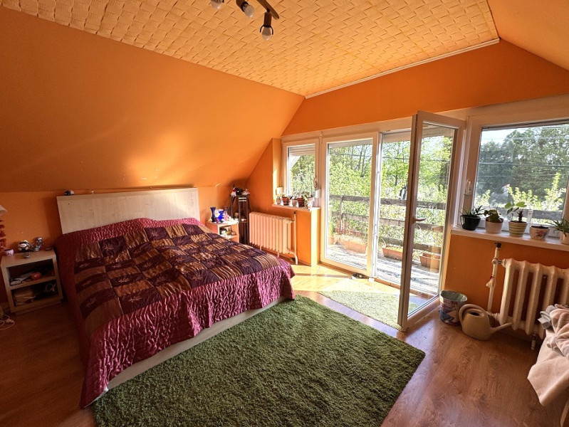 Az emeleten két szoba, egy fürdőszoba, külön WC, közlekedő és két erkély található. A nagyobbik szobából nyíló erkélyről a téli időszakban a Velencei-tó látványa is élvezhető.