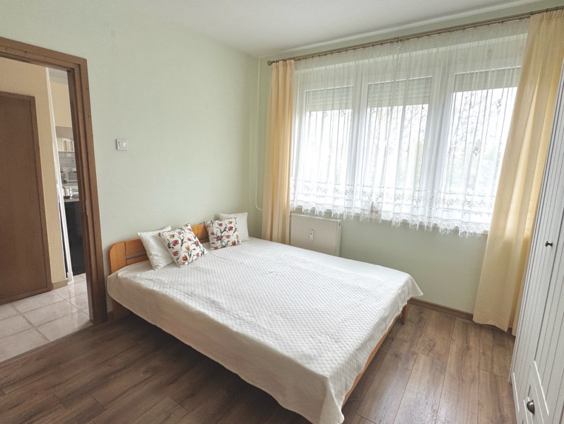 A lakás elosztása praktikus: két külön nyíló szoba, konyha, előszoba, fürdőszoba és külön WC található benne. A nagyszobából nyílik egy 3m2-es erkély, nap árnyékolóval.