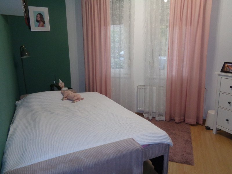 Belváros közelében a kor követelményeinek megfelelő anyagokból 2008-ban épült 3szintes 8 lakásos társasház, melynek a földszintjén található a lakás nettó 67nm. Részei : előszoba, nappali amerikai konyhával étkezővel (29nm.), két szoba, fürdőszoba (kád és zuhanyzó), külön WC-bidé, kézmosóval. A két szoba laminált parkettás, a többi helyiség minőségi járólappal burkolt. A konyha modern bútorral beépített. A fürdőszoba ablakos, szellőzése így megoldott. A WC bidés, és kézmosóval ellátott. A beltéri ajtók minőségiek, esztétikusak. Az új műanyag ablakok redőnnyel felszereltek. A bejárati ajtót több ponton záródó biztonságira cserélték. Fűtése cirkógázkazánnal, radiátoros hő leadással megoldott. A nappaliból jutunk erkélyre, ahonnan terasz kapcsolatot alakítottak ki, közvetlen a két kocsibeálló mellett, (a lakáshoz tartozik, benne van az árban), mely csendes, szélvédett, tökéletes pihenést nyújt a család miden tagjának, kiválóan alkalmas családi, baráti beszélgetésekre, kikapcsolódásra a mindennapi rohanás után.