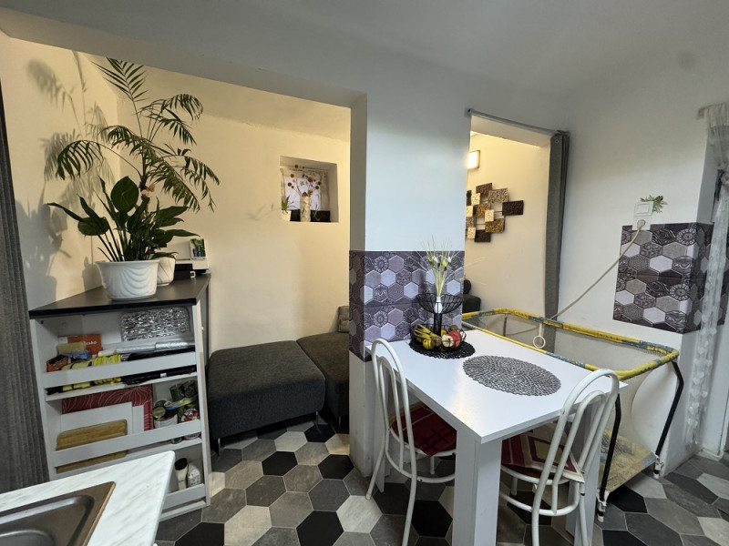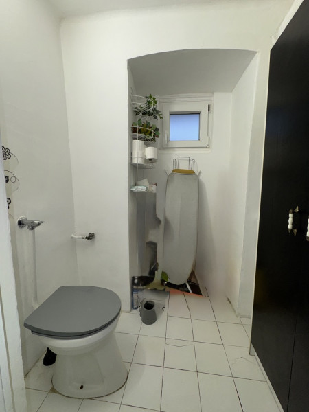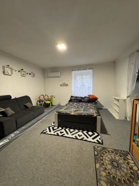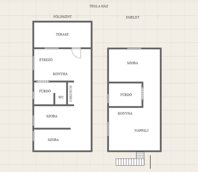 A telek bal oldalán egy 40 m² alapterületű, tégla falazatú, kétszintes ház található, amelynek felújítása már elkezdődött. A külső falak 10 cm szigetelést kaptak, a víz- és villanyvezetékek teljes egészében cserélve lettek, és a nyílászárók nagy része új, fa ablakokra lett cserélve. A ház korábban bisztróként működött, így kiváló lehetőséget nyújt vendéglátóhely, szépségszalon, iroda kialakítására, de akár több generáció együttélésére is, mivel a földszint és az emelet külön bejárattal rendelkezik.