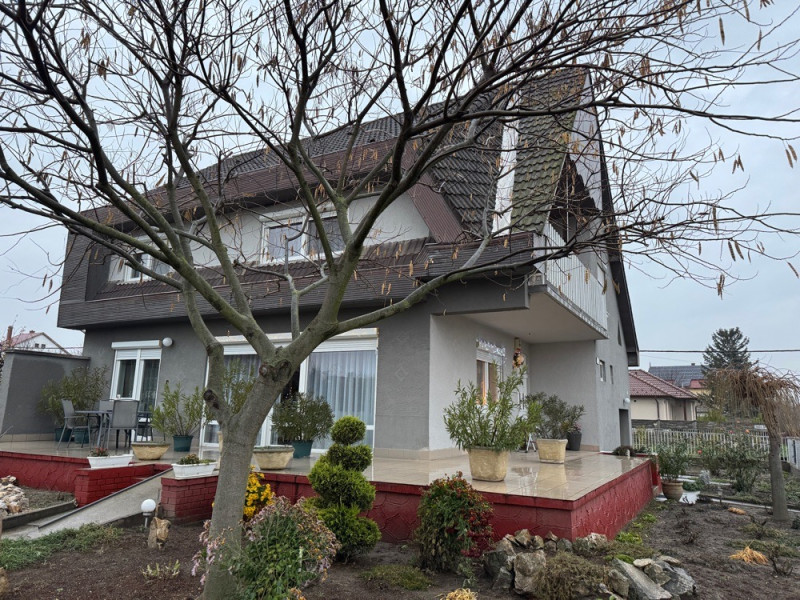 TÁGAS KÉTSZINTES CSALÁDI HÁZ NAGY TELEKKEL Szabadbattyán központjához közel, egy 1190 m²-es saroktelken eladó egy 1989-ben épült, rendkívül masszív szerkezetű, Porotherm 30 cm-es tégla falazattal és Bramac cseréptetővel készült családi ház. A ház építésekor mindenre kiemelt figyelmet fordítottak, így egy kifejezetten stabil, időtálló, minőségi otthon született. A két szint nagyjából 220 m² lakóteret biztosít, praktikus elrendezéssel. A földszinten tágas nappali, étkező, konyha, kamra, egy hálószoba, fürdőszoba és külön WC található. A nappaliból és a hálószobából közvetlen kijárat nyílik az 52 m²-es, félig fedett teraszra. Az emeleten három nagy méretű szoba, félszoba és fürdőszoba került kialakításra, melyek közül kettő saját, 12 m²-es loggiával rendelkezik. Az ingatlanhoz 15m²-es, fűtött garázs tartozik, valamint a telken egy 72 m²-es melléképület is található B30-as téglából építve, hullámpala fedéssel és szerelőaknával. Ez kiválóan alkalmas műhelynek, második garázsnak vagy akár vállalkozói tevékenység számára is. A kertben termő gyümölcsfák, eper és málna találhatók, emellett egy 10m³-es esővízgyűjtő biztosítja a gazdaságos öntözést. A kert gyönyörűen parkosított, csak a jelenlegi idő nem mutatja meg a teljes szépségét. A fűtést gázkazán biztosítja új lapradiátorokkal, de rendelkezésre áll egy vegyes tüzelésű Totya-kazán is. A melegvízről 200 literes villanybojler állítja elő. Minden nyílászáró korszerű, műanyag ablakra és ajtóra lett cserélve, valamennyi redőnnyel felszerelve. Az ingatlan teljes közművel ellátott, tehermentes, rendezett tulajdonviszonyú. Az ingatlan elhelyezkedése kiemelkedően jó:
