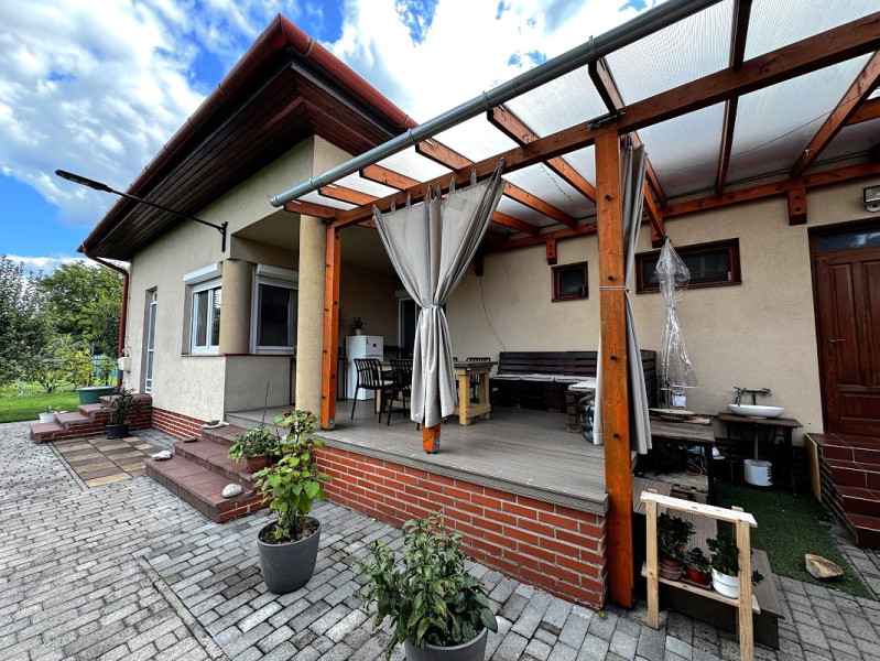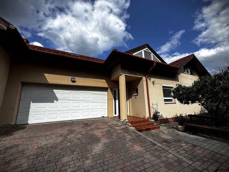 Székesfehérvár, Feketehegy városrészben eladó egy 2001-ben épült, 38 cm vastag Porotherm tégla falazatú, sorházas beépítés szélén álló ház. Az ingatlan 166 m² hasznos lakóteret kínál (földszint 87 m² + emelet 79 m²) nappali + 5 szoba és 2 fürdőszoba elrendezéssel; a földszinten nappali–étkező–konyha egyben, szülői háló saját fürdővel, vendég-WC és 33 m²-es, fűtött, elektromos kapuval szerelt dupla garázs található, az étkezőből közel 25 m²-es teraszra lépünk ki. Az emelet közlekedője közösségi térként is használható; innen négy nagyméretű szoba és fürdő, valamint az egyik szobához gardrób nyílik. A ház 2013-ban teljes körű felújításon esett át, 2019-ben pedig háromrétegű nyílászárókat építettek be alumínium redőnyökkel. A fűtést és a melegvizet korszerű gáz kombikazán biztosítja radiátoros hőleadással, a nappaliban emellett egy 17 kW-os öntvény kandalló nyújt hangulatos és hatékony alternatív fűtést.