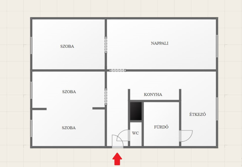Az ingatlan helyiségei: előszoba, nappali, három szoba, konyha, étkező, fürdőszoba és külön WC. A jól átgondolt alaprajz ideális választás lehet családok számára is.